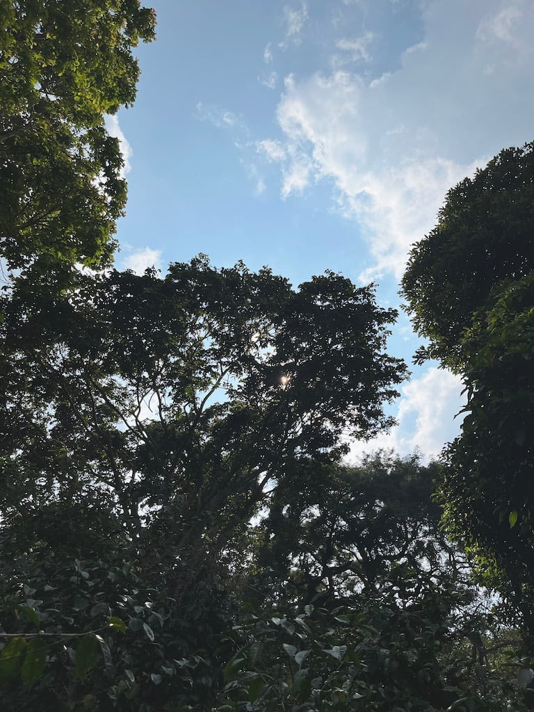 The valley in which La Divina sits is mainly of volcanic origin, and is strikingly beautiful. Lago de Coatepeque, a natural lake formed in the crater of a former volcano, looms in the distance as the road climbs up to the farm, becoming rougher and less defined as it winds its way up the steep slopes of the Santa Ana volcano. Arriving in the deep forest cover of La Divina is calm and tranquil compared to the drama and noise of the journey, and allows a chance to survey and absorb the surroundings.
